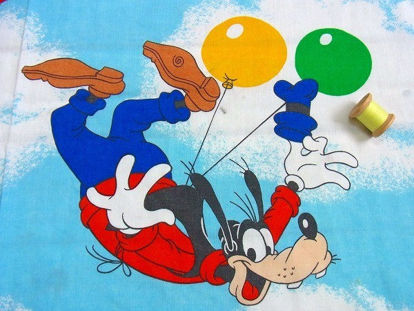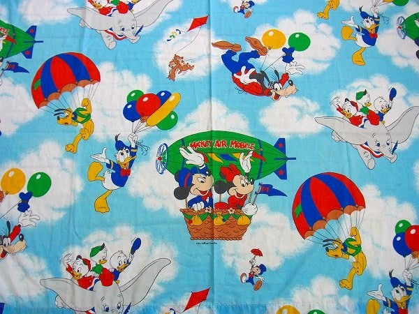 【ミッキー&フレンズ】ディズニー・飛行船・ヴィンテージ・ユーズドシーツ(フラット)USA