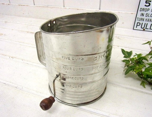 アメリカで見つけました・・『BROMWELL』のティン製・メジャーリング・ヴィンテージ・シフター(粉ふるい)です。
