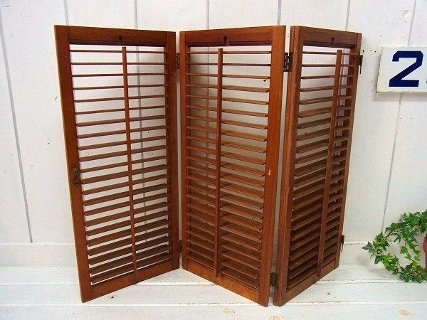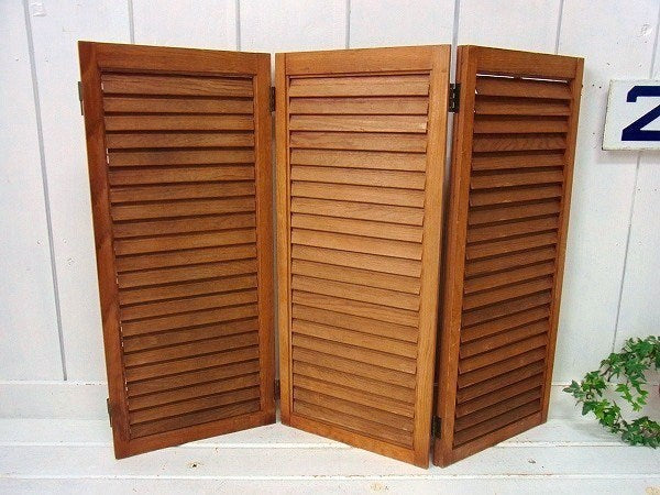 木製・3連のアンティーク・ルーバー/ヴォレー/シャッター/建具 USA