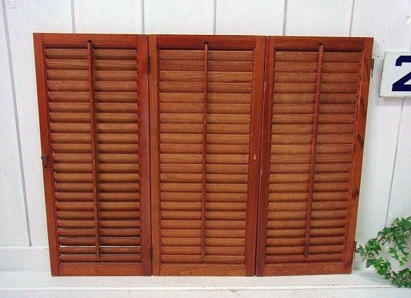 アメリカで見つけました・・3連の木製アンティーク・ルーバー(ヴォレー/シャッター)です。