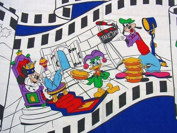 【ミッキー&フレンズ】ディズニー・フィルム柄・ヴィンテージ・ユーズドシーツ(1/2) USA