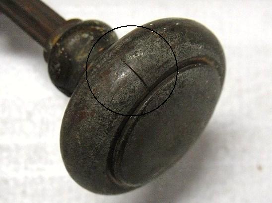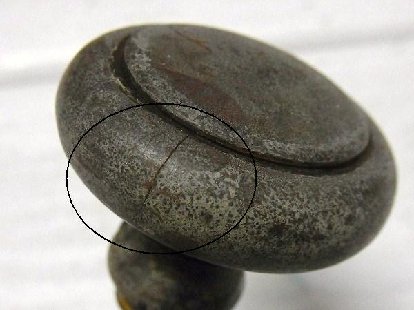 経年による多少のヨゴレ・スリキズ・サビ・くすみ・両方のノブにヒビ箇所(画像参照)等ございます。