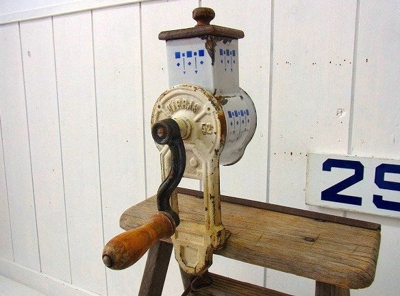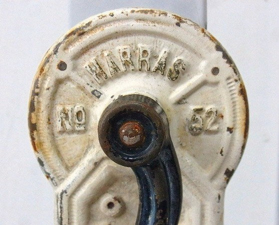 アメリカで見つけました・・『HARRAS NO.52』のアイアン製×ホーロー製・アンティーク・ミートグラインダーです。