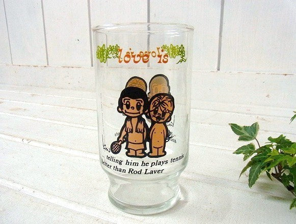 【love is】ロサンゼルスタイムズ新聞・テニス柄・ノベルティ・70'sヴィンテージ・グラス①