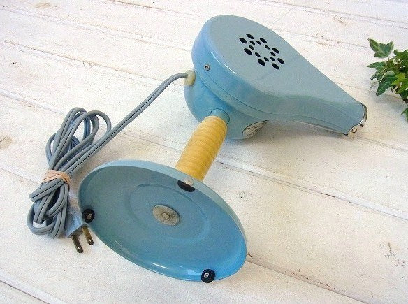 レトロなデザインがとっても可愛い、パウダーブルー色のドライヤーです。