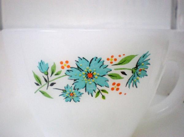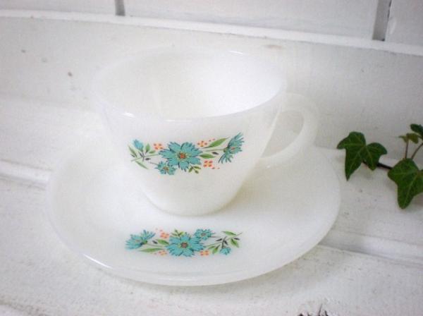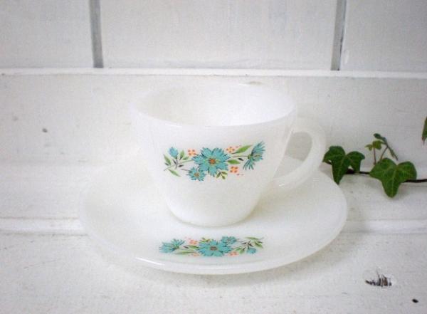 FireKingプレミアムシリーズ ボニーブルー 花柄 ヴィンテージ カップ&ソーサー 食器