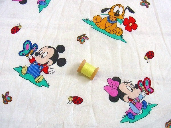 ベビーミッキー&ミニーやプルート&蝶々&てんとう虫の可愛い総柄プリントです。