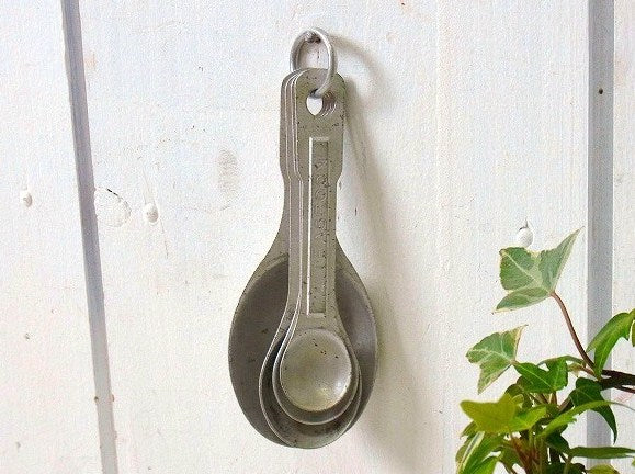 アメリカで見つけました・・アルミ製のヴィンテージ・計量スプーン・4本セットです。