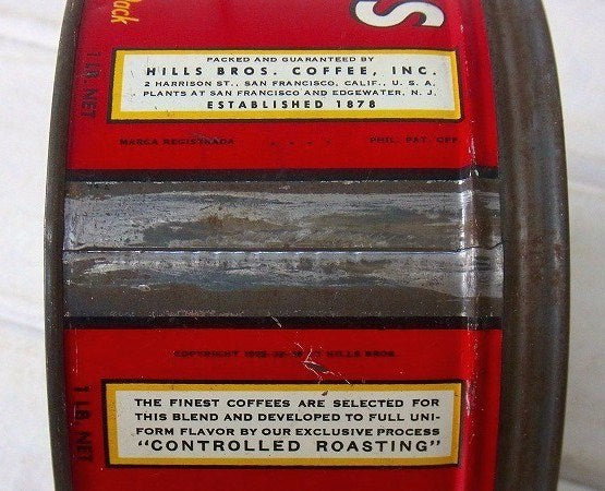 【HILLS BROS】ヒルスコーヒー・ブリキ製・ヴィンテージ・コーヒー缶/ティン缶 USA