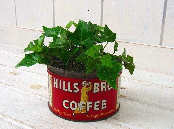 アメリカで見つけました・・1878年にアメリカ・サンフランシスコで誕生した老舗コーヒーブランド『HILLS BROS COFFEE(ヒルスコーヒー)』のヴィンテージ・ティン缶です。