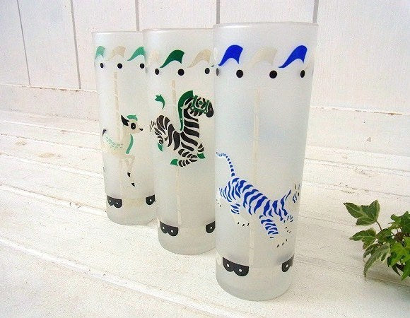 【LIBBEY】リビーグラス・トラ・メリーゴーランド柄・ヴィンテージ・グラス USA
