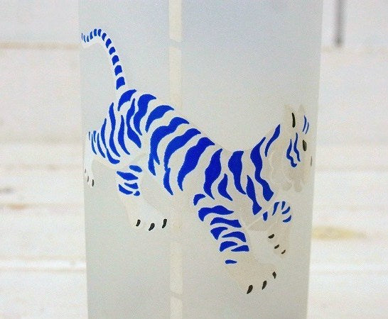 すりガラス製ベースに、トラのメリーゴーランド柄プリントです。