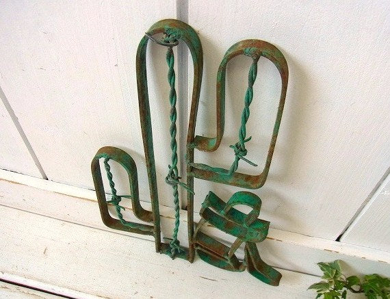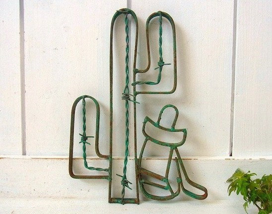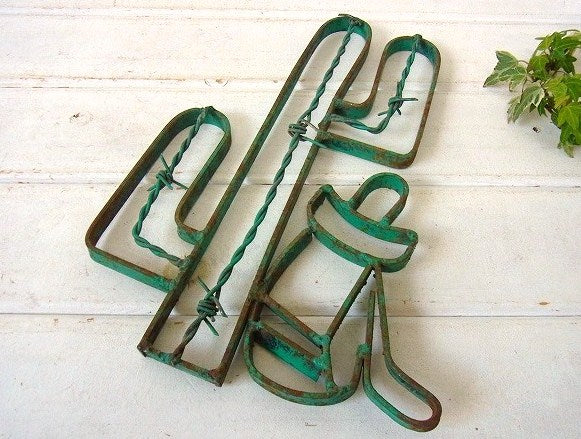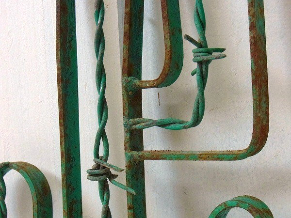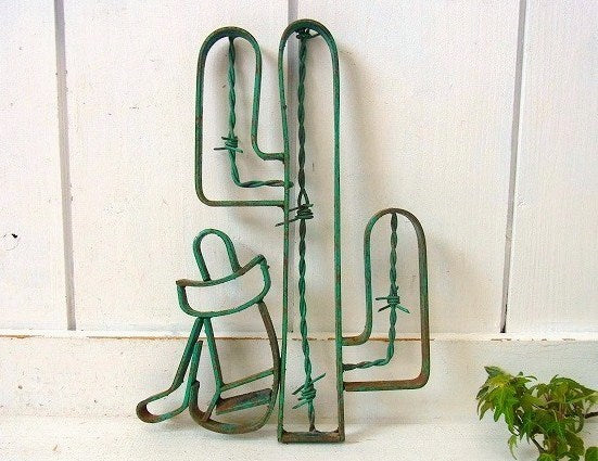 アメリカで見つけました・・サボテン型のアイアン製×有刺鉄線製・ヴィンテージ・壁飾りです。