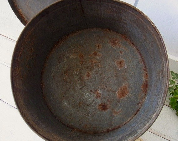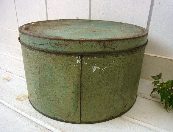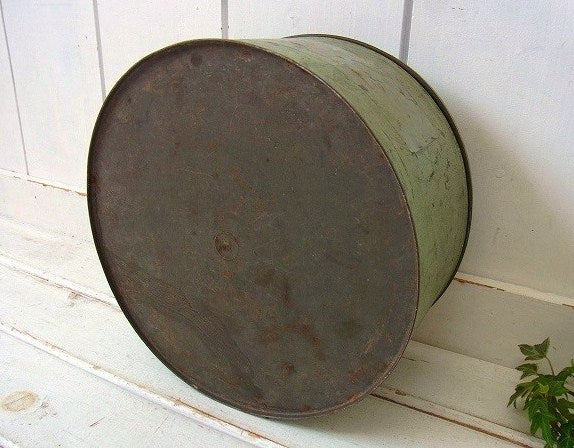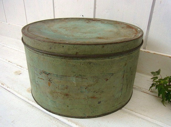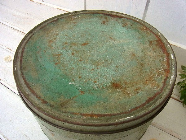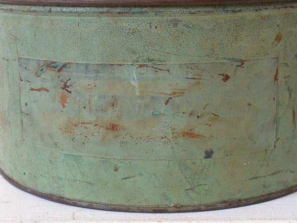 若草色のシャビーなアンティーク・ティン缶/ブリキ缶 USA
