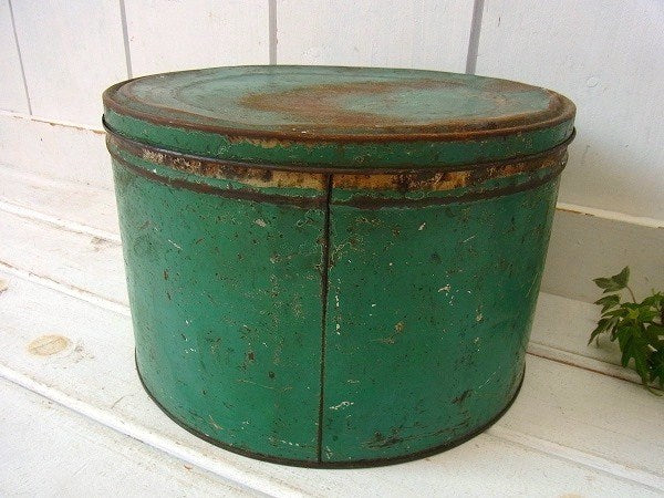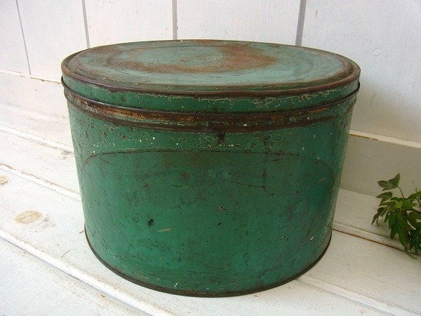 緑色のシャビーなアンティーク・ティン缶/ブリキ缶 USA