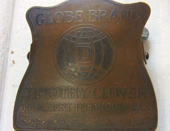 クリップ表面に、【GLOBE BRAND TIMOTHY CLOVER THE ALBERT DICKINSON CO CHICAGO】とエンボス文字が入っております。