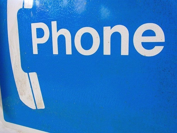 ブルー×ホワイトベースに、大きな受話器のデザインです。