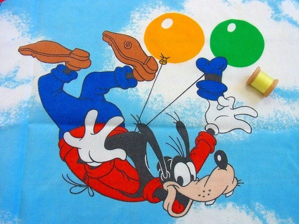 【ミッキー&フレンズ】ディズニー・飛行船・ヴィンテージ・ファブリック/生地/カーテン