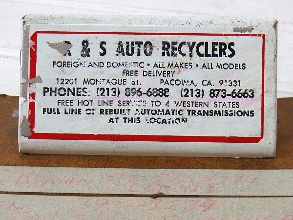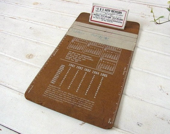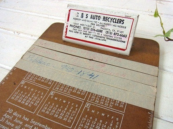 アメリカで見つけました・・『R&S AUTO RECYCLERS』のメジャー&カレンダー付き・アドバタイジング・80'sヴィンテージ・クリップボード(バインダー)です。