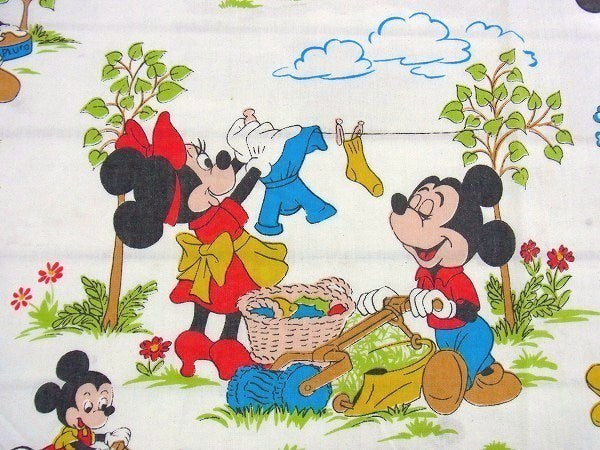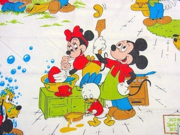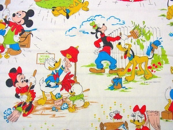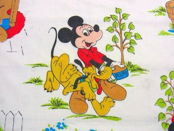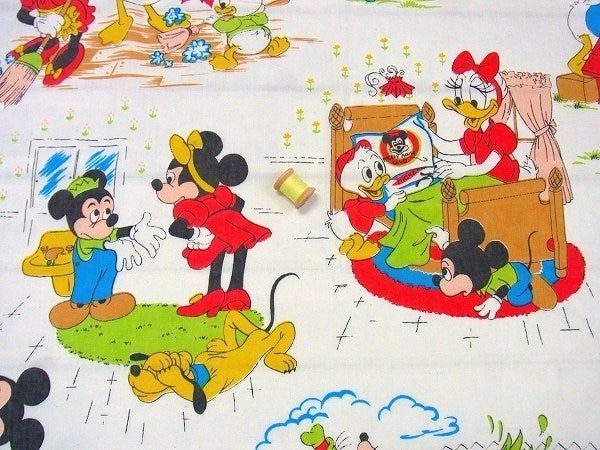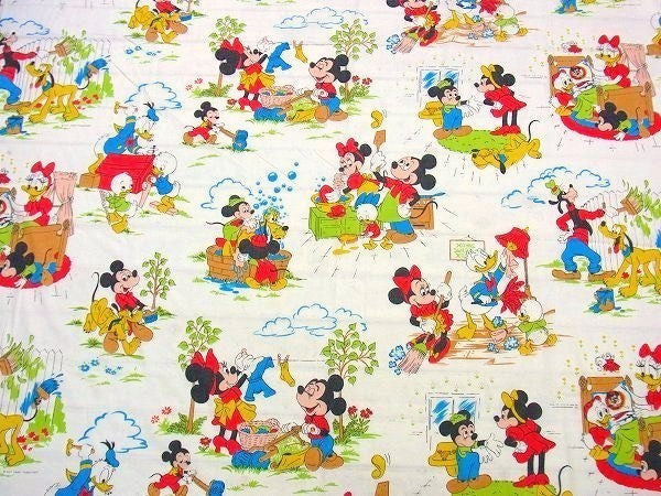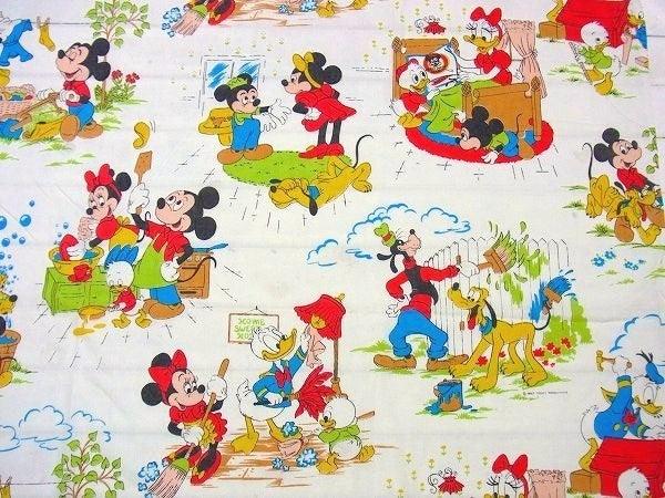 アメリカで見つけました・・ディズニー『ミッキー&フレンズ』のヴィンテージ・USEDフラットシーツ(ハーフサイズ)です。
