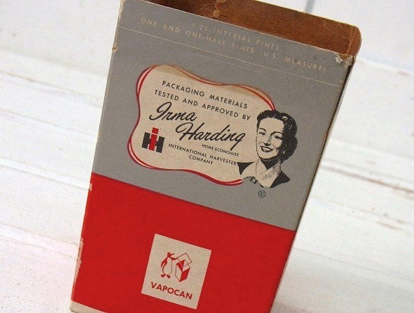 “イルマハーディング”のイラストや【PACKING MATERIALS TESTED AND APPOROVED BY Irma Harding HOME ECONOMIST INTERNATIONAL HARVESTER COMPANY】とございます。