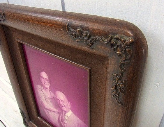 アメリカで見つけました・・古いセピア写真入りの木製・アンティーク・フォトフレーム(額縁)です。