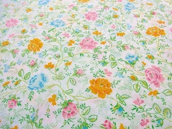 【J.C.Penny】花柄・ヴィンテージ・フラットシーツ/花柄シーツ USA