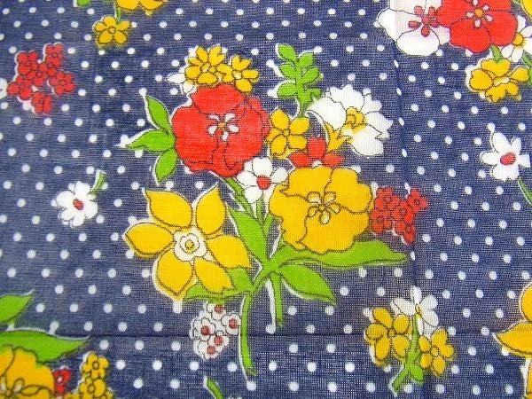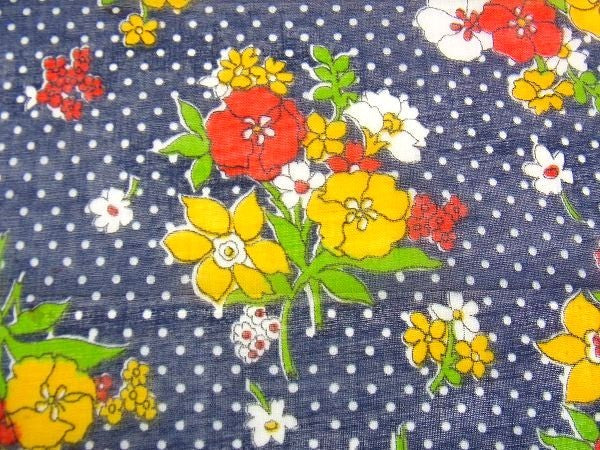 ネイビー×ホワイトの水玉ベースに、花束ような黄×赤×白色の小花柄プリントです。