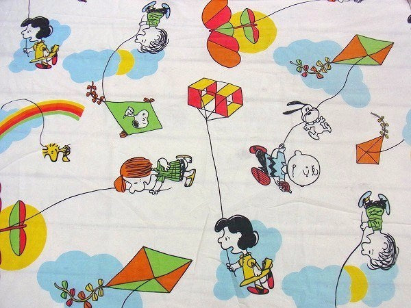 【スヌーピー】ピーナッツの仲間・カイト柄・ヴィンテージ・ユーズドシーツ(フラットタイプ) USA