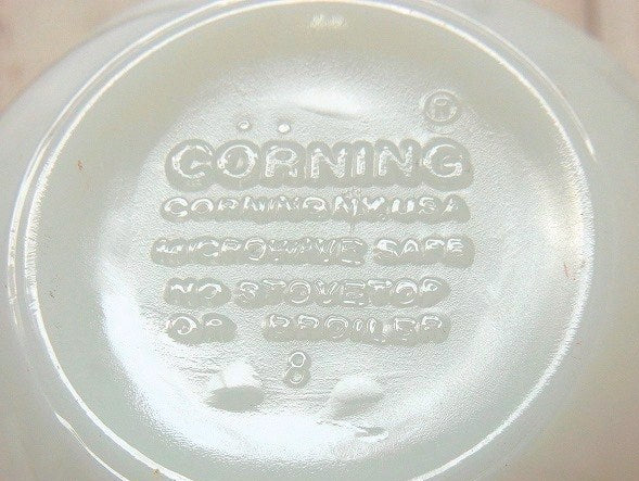 バックスタンプは【CORNING N.Y. U.S.A. MICROWAVE SAFE NO STOVETOP OR BROILER 】です。
