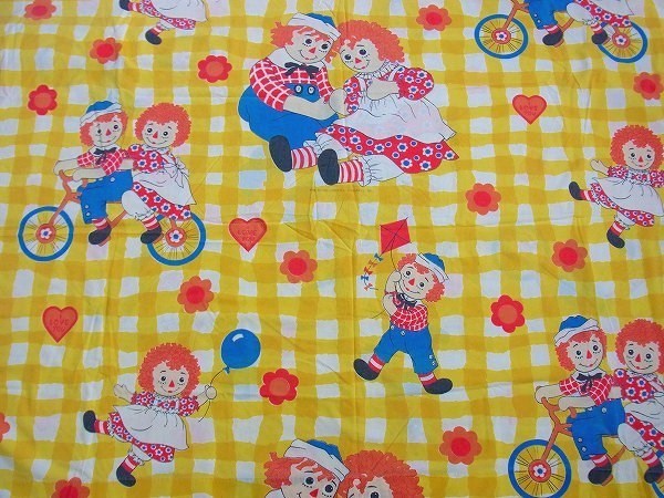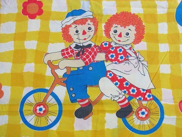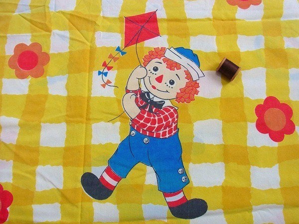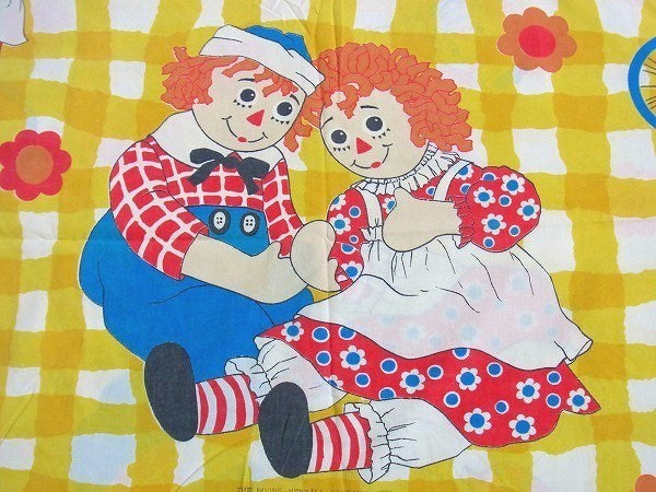 アメリカで見つけました・・・『ラガディアン&アンディ』の黄色チェック柄・ヴィンテージ・USEDフラットシーツです。