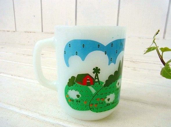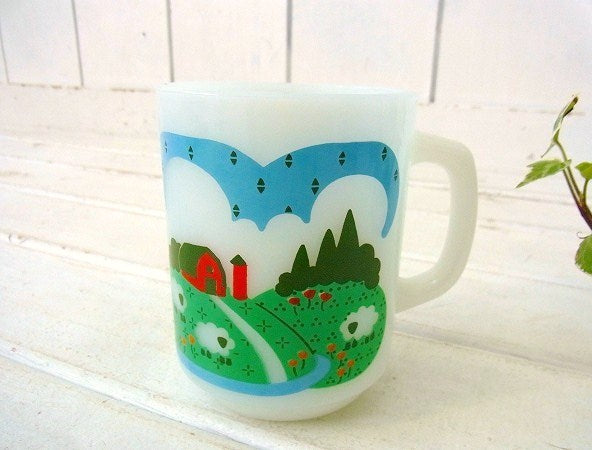 【Fire King】ファイヤーキング・メドウズ・羊&牧場柄・マグカップ USA