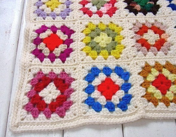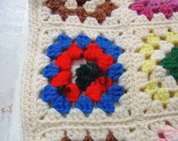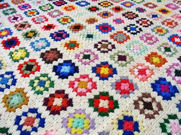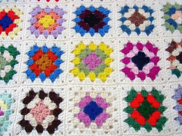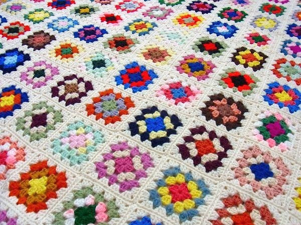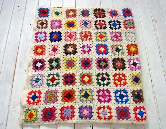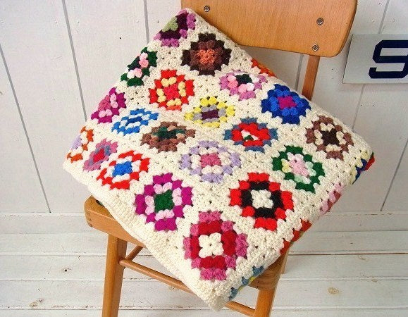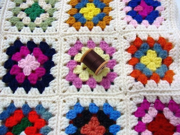 モチーフ編み・アンティーク・グラニーブランケット/ニットブランケット USA