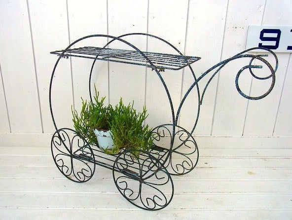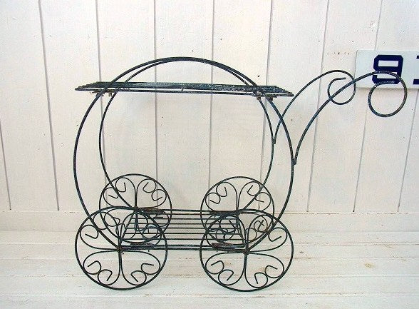 アメリカで見つけました・・ベビーカート形のヴィンテージ・ガーデンラックです。