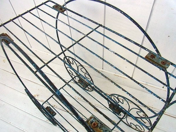 青色のシャビーなヴィンテージ・ガーデンラック/ガーデンシェルフ/棚 USA