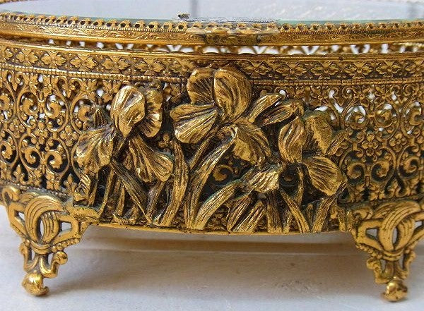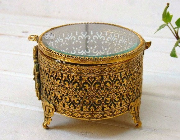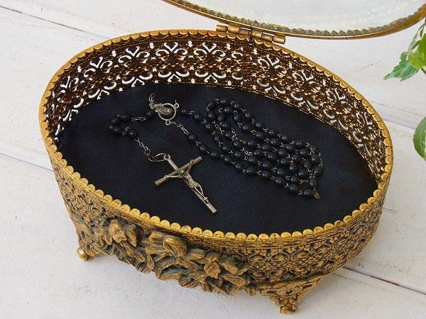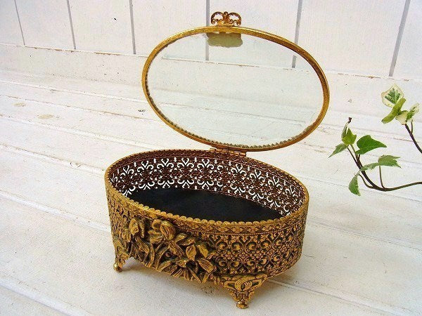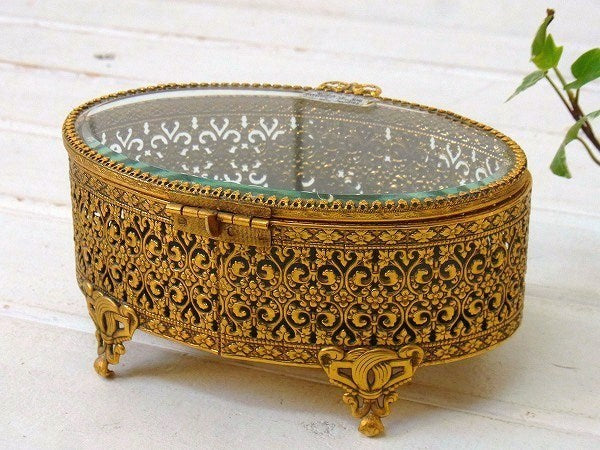 【Stylebuilt】ベベルガラス・24K・オーバル型・脚付きアンティーク・ジュエリーボックス
