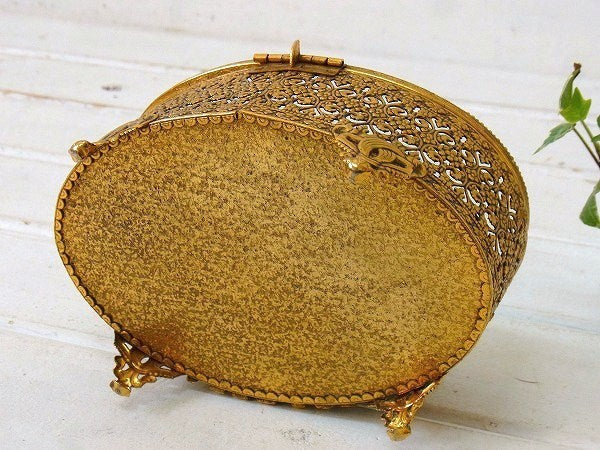 アメリカで見つけました・・『Stylebuilt Accessories』のオーバル型・アンティーク・脚付きジュエリーボックスです。