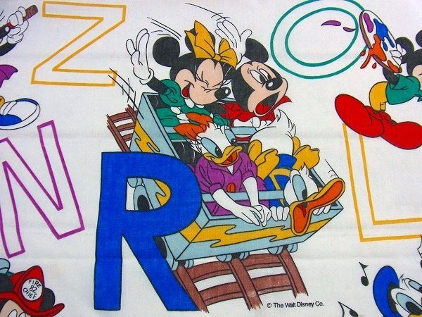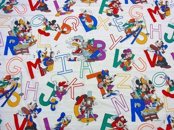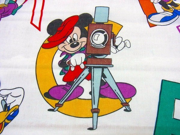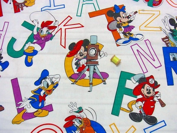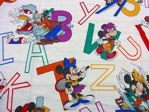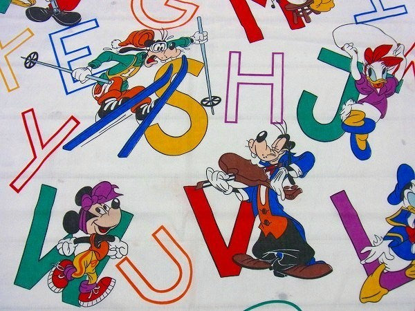 【ミッキー&フレンズ】ディズニー・アルファベット柄・ヴィンテージ・フラットシーツ(1/2) USA