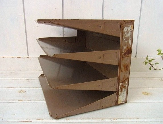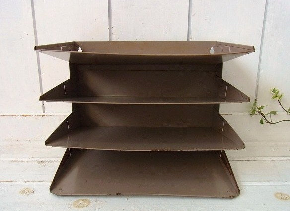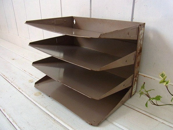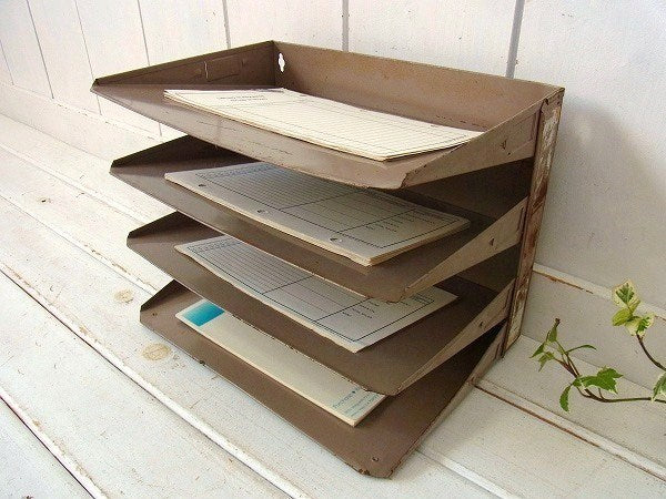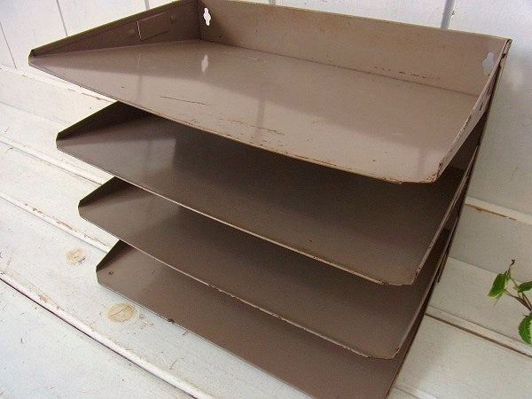 アメリカで見つけました・・工業系のメタル製・ヴィンテージ4段・書類トレイです。