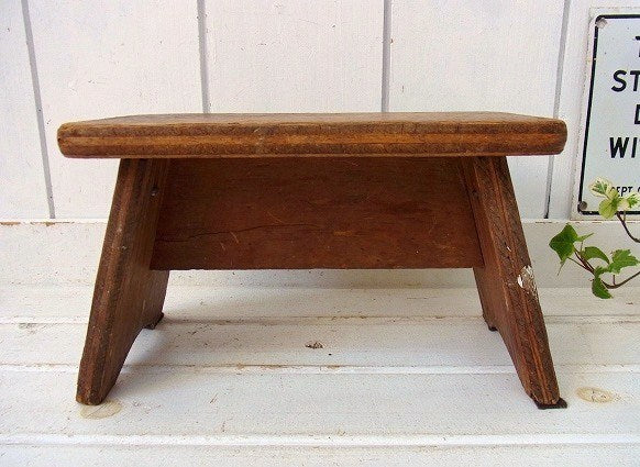 シャビーな木製のアンティーク・OLDスツール/踏み台/USA