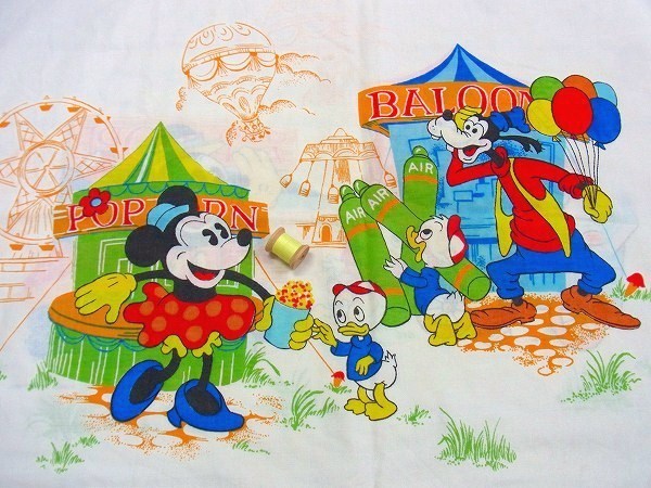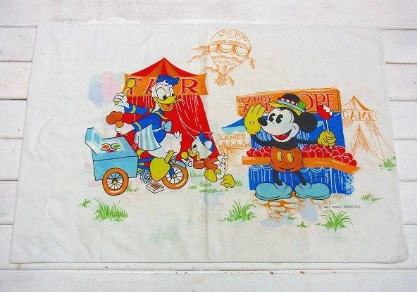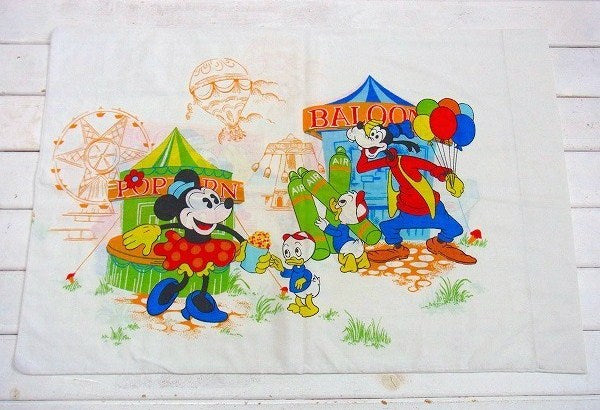 アメリカで見つけました・・ディズニー『ミッキー&フレンズ』のお祭り柄・ヴィンテージ・USEDピロケース(枕カバー)です。