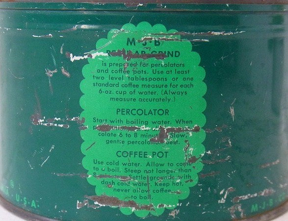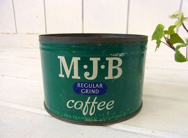 アメリカで見つけました・・1881年にサンフランシスコで創業された歴史ある老舗コーヒーブランド『MJB』のティン製・ヴィンテージ・コーヒー缶です。