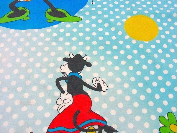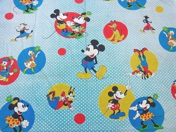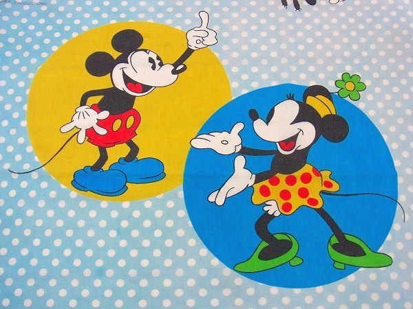 【ミッキー&フレンズ】水玉&ダンス柄・ヴィンテージ・ユーズドシーツ(フラットシーツ) USA