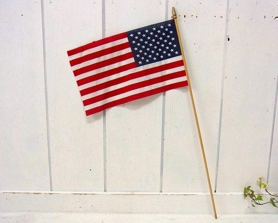 木製ポール付き・ヴィンテージ・星条旗・アメリカンフラッグ/国旗/50星 USA