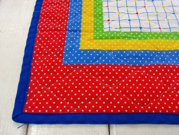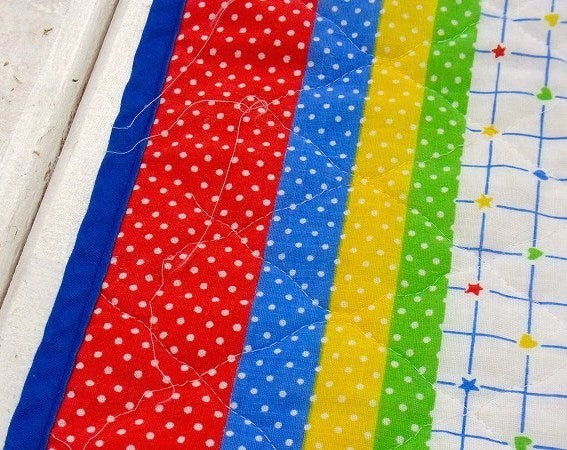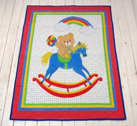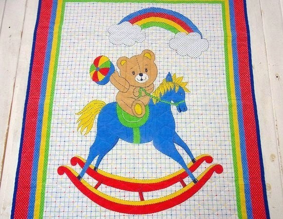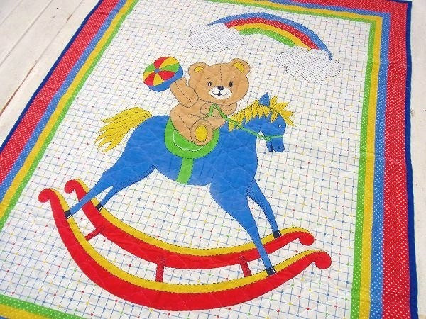 レインボー&木馬に乗ったクマさん柄・ヴィンテージ・ベビーマット/キルティング USA