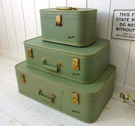 【Starline】ミントグリーン色・ヴィンテージ・スーツケース/トランク(L) USA