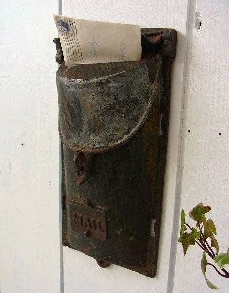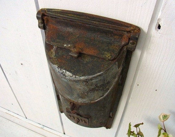 アメリカで見つけました・・黒色のキャストアイアン製・アンティーク・メールボックス(郵便受け)です。