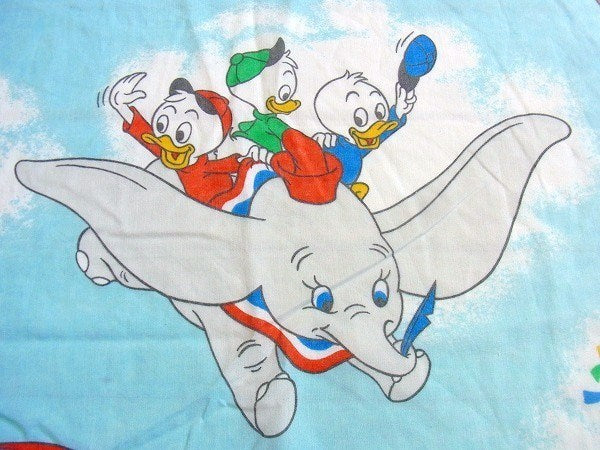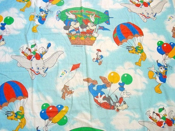 アメリカで見つけました・・ディズニー『ミッキー&フレンズ』の飛行船柄ヴィンテージ・USEDフィットシーツです。