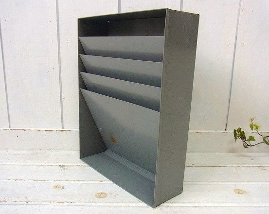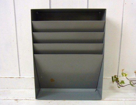 【HUNTLIT-NING】工業系・グレー色のメタル製・ヴィンテージ・書類スタンド/書類ラック