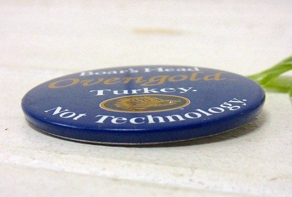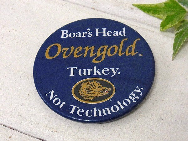 アメリカで見つけました・・『Boar's Head Ovengold Turkey. Not Technology.』のヴィンテージ・缶バッジです。